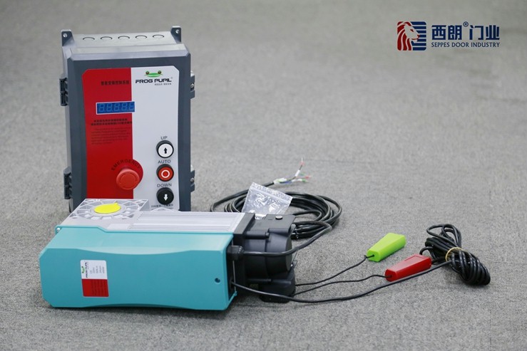 下圖為:西朗門業工業滑升門配備的德國菲瑞普變頻電機與智能控制系統照片