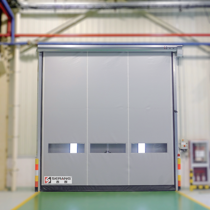 Speedy高速卷簾門的簾布由密度為700-1700 G/m² 的耐用聚酯纖維構成,可內嵌透明簾布作為視窗。此高速門獨特的導軌拉鏈式設計和一體式密封門體,可以在最大限度減少能耗損失的前提下,提供高效的物流出入口,保持室內原有的溫度條件和潔凈度。